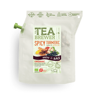 Spicy Tumeric kombinerer varme fornemmelser fra ingefær, kanel og safran med sødme fra æble, solsikkeblade og vindrue. Alt i alt får du en skøn, varm te med kraftige smage, der leder tankerne mod østen.